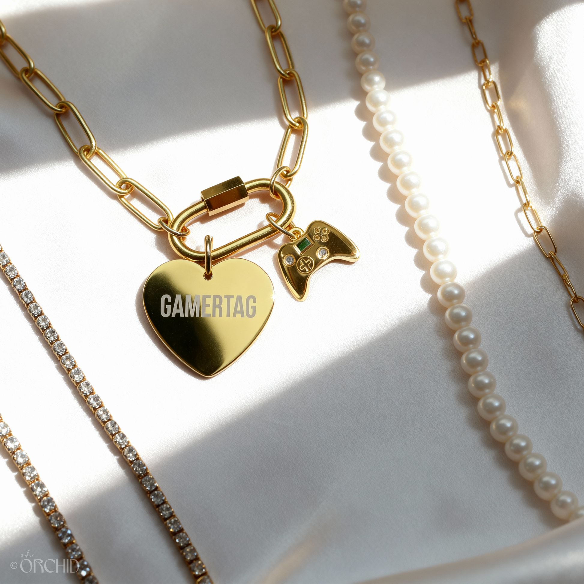 Our Best Selling Cara Collection now featuring custom necklaces and bracelets for gamers featuring their unique gamertag + controller charm.